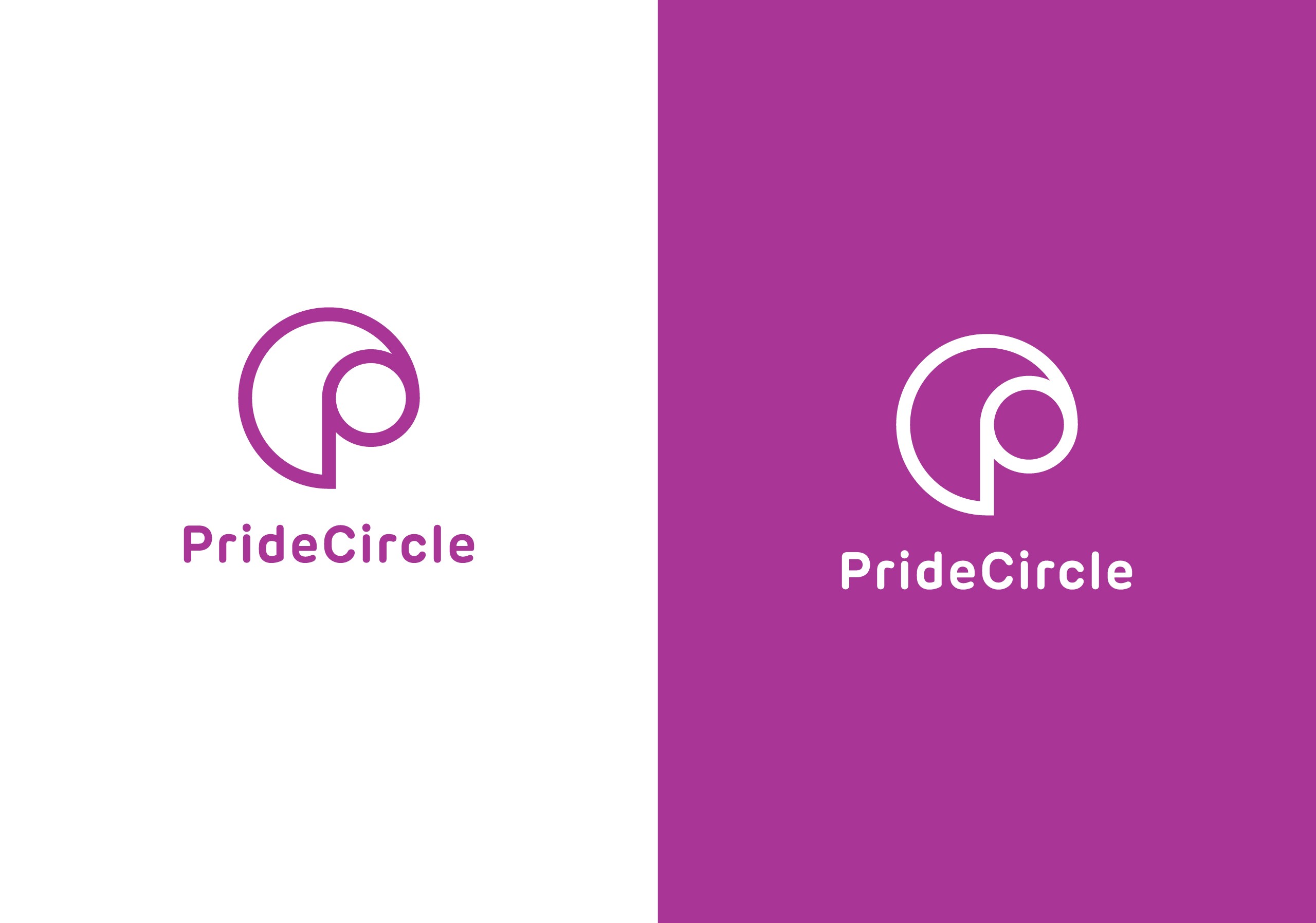 Verticaal logo PrideCircle – variant voor smalle toepassingen met behoud van identiteitLogo in paarse hoofdkleur en diapositief – moderne varianten van de merkidentiteit